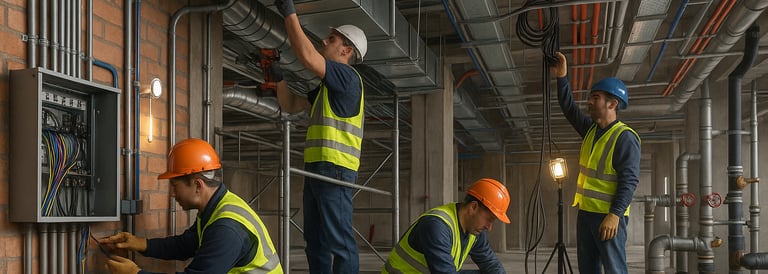 Covers all power distribution, lighting, fire alarm, and low-current systems essential for safety, functionality, and daily operations.
